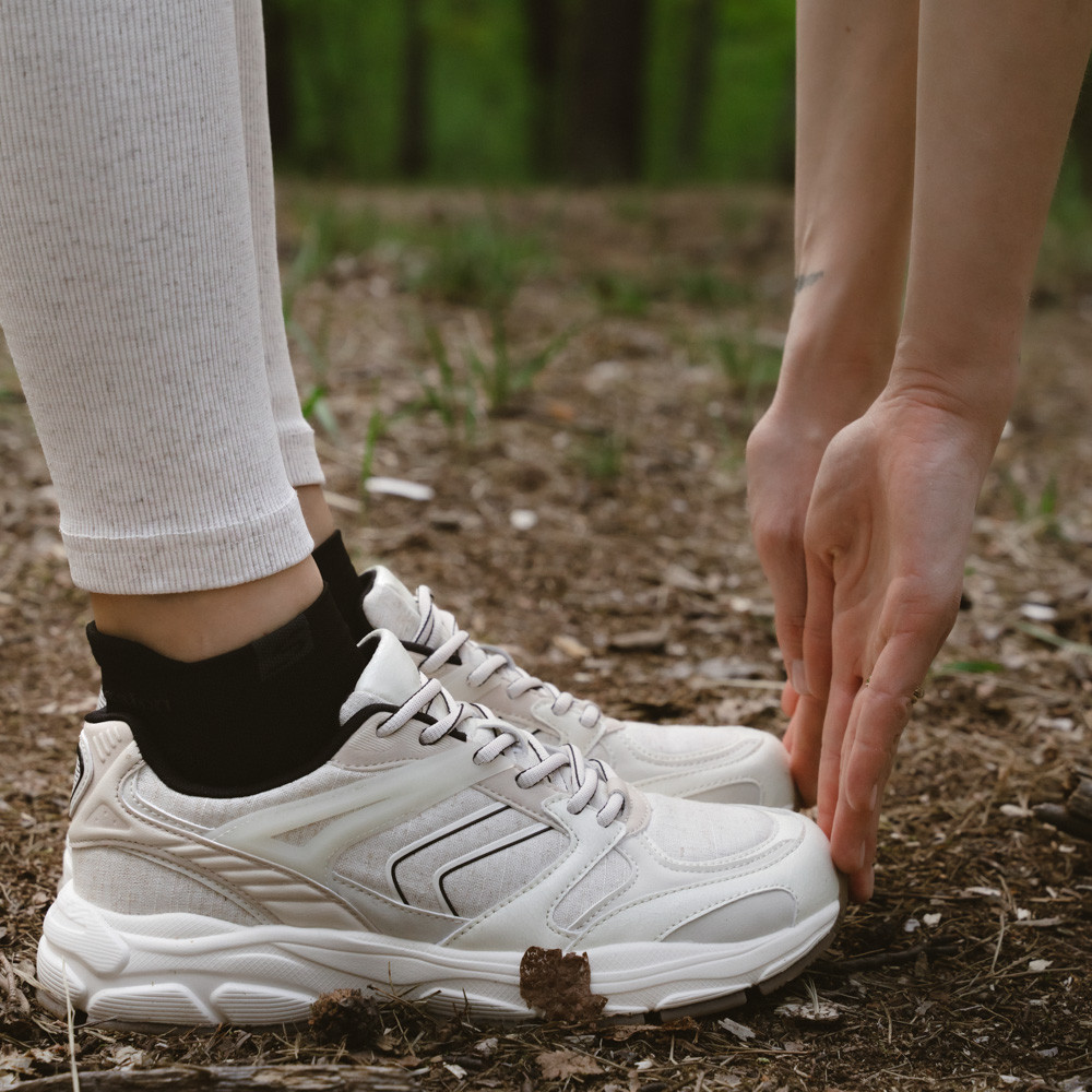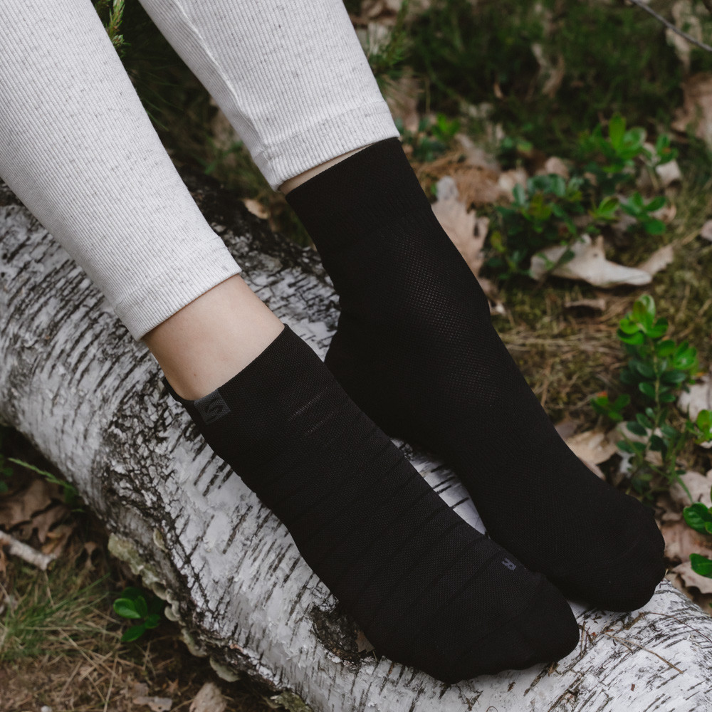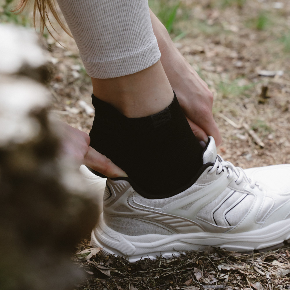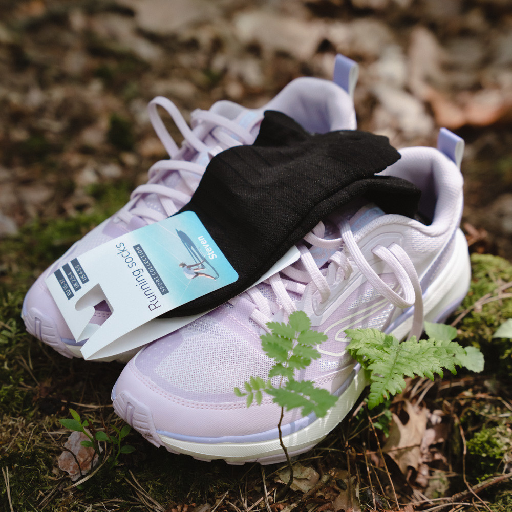Stopki do biegania to produkt, który został zaprojektowany z myślą o wymagających treningach. Skarpety wyprodukowano z polipropylenu (68%) wzbogaconego lycrą z jonami srebra (27%) oraz z poliamidu (3%) i elastanu (2%). Polipropylen to materiał hydrofobowy, który nie wchłania wilgoci, lecz odprowadza ją na zewnątrz. Dzięki temu stopy pozostają suche nawet podczas intensywnego wysiłku. Jest jednym z najlżejszych włókien stosowanych w produkcji odzieży, co sprawia, że skarpety wykonane z tego materiału są niezwykle lekkie i wygodne. Produkt jest odporny na przetarcia oraz rozciąganie, co oznacza, że jest wytrzymały podczas użytkowania i dłużej zachowuje swoje właściwości. Materiał dobrze izoluje, zapewniając komfort cieplny zarówno w chłodnych, jak i ciepłych warunkach. Jony srebra posiadają naturalne właściwości bakteriobójcze i grzybobójcze, co zapobiega powstawaniu nieprzyjemnego zapachu oraz chroni przed infekcjami skórnymi. Produkt nie wywołuje reakcji alergicznych, co czyni go idealnym wyborem dla osób z wrażliwą skórą. Uczucie komfortu podczas treningów zapewniają: miękka frotta w stopie, bezszwowe łączenie i strefy oddychające.