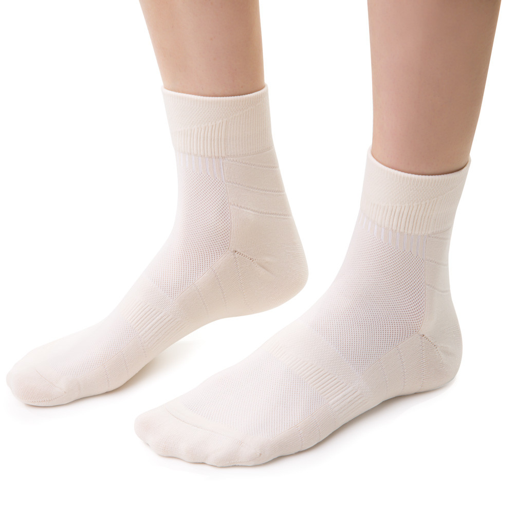 Skarpetki do biegania to produkt, który został zaprojektowany z myślą o wymagających treningach. Skarpety wyprodukowano z polipropylenu (67%) wzbogaconego lycrą z jonami srebra (19%) oraz z poliamidu i elastanu. Polipropylen to materiał hydrofobowy, który nie wchłania wilgoci, lecz odprowadza ją na zewnątrz. Dzięki temu stopy pozostają suche nawet podczas intensywnego wysiłku. Jest jednym z najlżejszych włókien stosowanych w produkcji odzieży, co sprawia, że skarpety wykonane z tego materiału są niezwykle lekkie i wygodne. Produkt jest odporny na przetarcia oraz rozciąganie, co oznacza, że jest wytrzymały podczas użytkowania i dłużej zachowuje swoje właściwości. Materiał dobrze izoluje, zapewniając komfort cieplny zarówno w chłodnych, jak i ciepłych warunkach. Jony srebra posiadają naturalne właściwości bakteriobójcze i grzybobójcze, co zapobiega powstawaniu nieprzyjemnego zapachu oraz chroni przed infekcjami skórnymi. Produkt nie wywołuje reakcji alergicznych, co czyni go idealnym wyborem dla osób z wrażliwą skórą. Uczucie komfortu podczas treningów zapewniają: miękka frotta w stopie, bezszwowe łączenie i strefy oddychające.