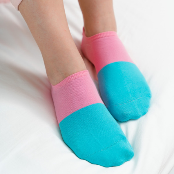 Zupełnie nic ich nie łączy, a jednak tworzą zgraną parę. Podobnie jest z ludźmi. Niby zero wspólnych cech, inni w każdym calu, a jednak coś iskrzy i sprawia, że są świetnym duetem. Ona słucha muzyki poważnej, lubi wytrawne wino i kocha góry. On jeździ na hulajnodze do pracy, do wszystkiego podchodzi na luzie i uwielbia surfing. Całkiem różni, a jednak nie mogą bez siebie żyć. Takie właśnie są bawełniane stopki TWO COLOURS.