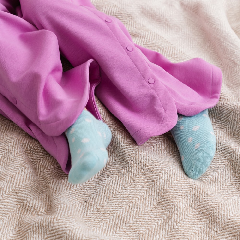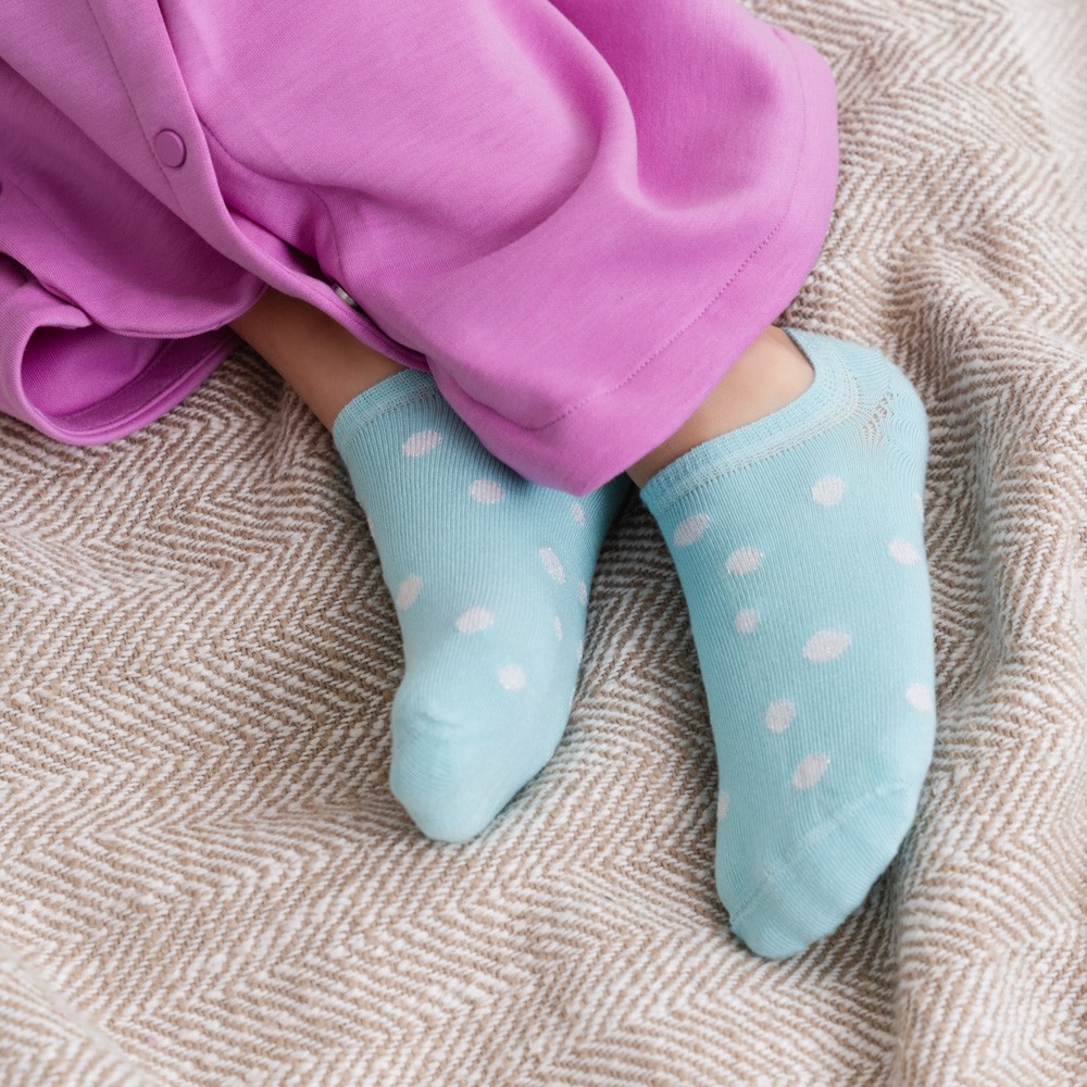 Musicie uwierzyć nam na słowo, ale te pastelowe stopki nie tylko tak delikatnie wyglądają. One same w sobie są delikatnością, którą dodatkowo podkreślono słodkimi wzorkami. Oprócz serduszek, specjalnie dla dziewczynek lubiących kiedy coś się błyszczy mamy srebrne metalizowane groszki. Użyta do produkcji bambusowa przędza daje wyjątkową miękkość, którą wręcz należało podkreślić bezszwowymi łączeniami. Trzeba też koniecznie dodać, że te cudeńka są higroskopijne i termoregulujące, co oznacza, że świetnie pochłaniają wodę oraz odprowadzają wilgoć dając w ciepłe dni przyjemne uczucie chłodu.