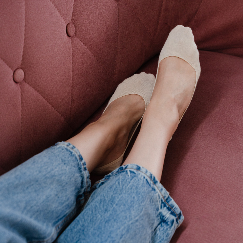 Mocno wycięte skarpety typu stopki „baleriny" stworzone zostały z myślą o paniach, które poszukują dyskretnych, eleganckich skarpet niewidocznych z obuwia. Wykonane z najwyższej jakości bawełnianej przędzy zadbają o komfort użytkowania. Dodatkowo silikon, umieszczony na pięcie, zapobiega ściąganiu się skarpet ze stopy. Idealna propozycja na sezon wiosenno-letni.
