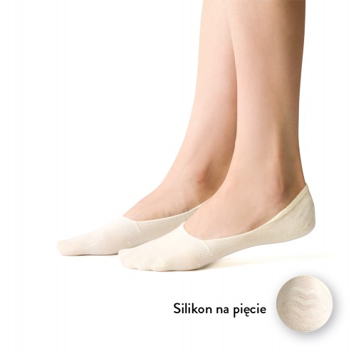 Mocno wycięte skarpety typu stopki „baleriny" stworzone zostały z myślą o paniach, które poszukują dyskretnych, eleganckich skarpet niewidocznych z obuwia. Wykonane z najwyższej jakości bawełnianej przędzy zadbają o komfort użytkowania. Dodatkowo silikon, umieszczony na pięcie, zapobiega ściąganiu się skarpet ze stopy. Idealna propozycja na sezon wiosenno-letni.