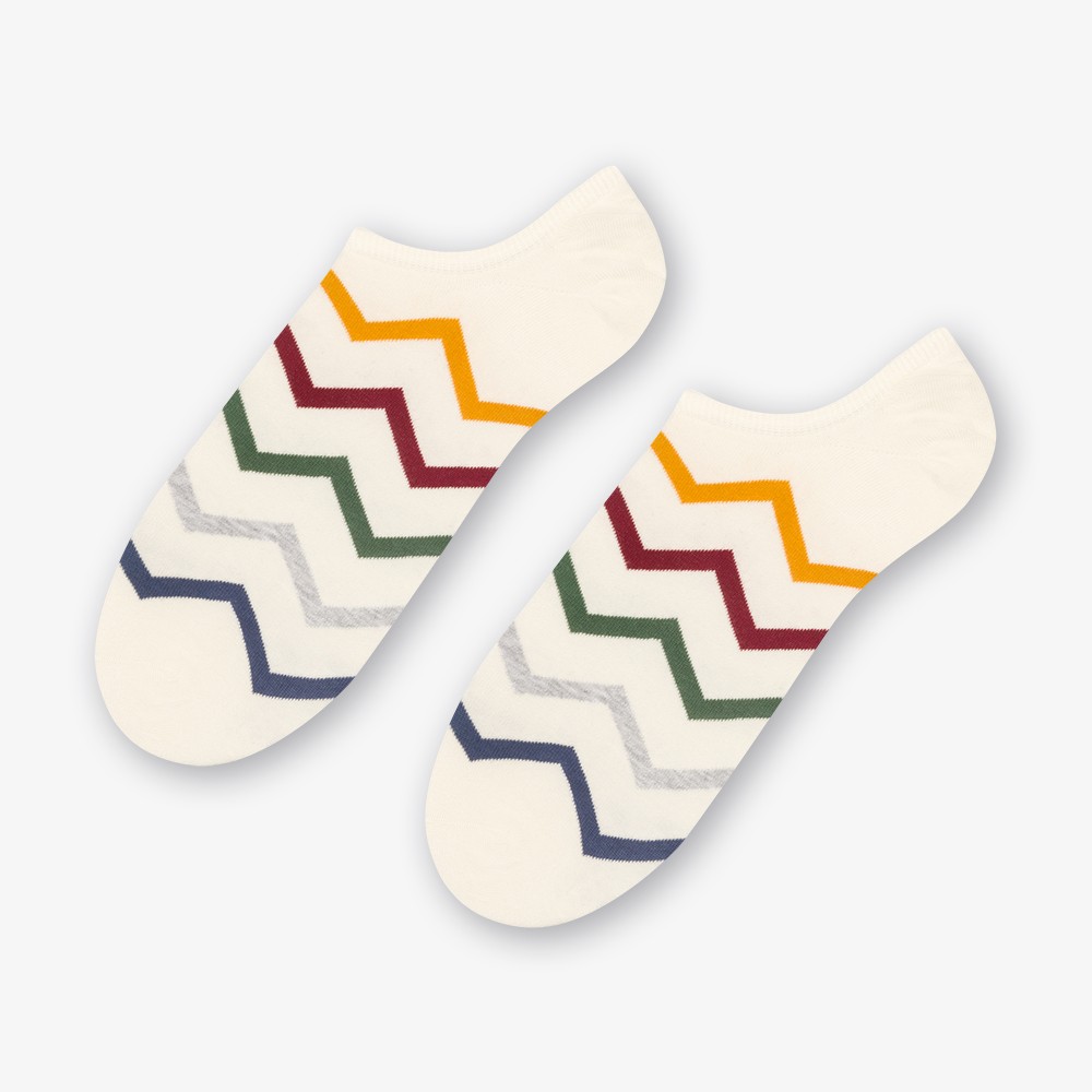 ZIGZAG MORE to doskonałej jakości bawełniane skarpetki dla tych, którzy wiedzą, że w życiu nie zawsze jest prosto. Tak to już jest na tym świecie, że po wzlotach przychodzą upadki i cała zabawa zaczyna się od początku. Trzeba o tym pamiętać, nie poddawać się niepowodzeniami i uparcie wspinać na kolejne szczyty, bo przecież "co nas nie zabije to nas wzmocni".