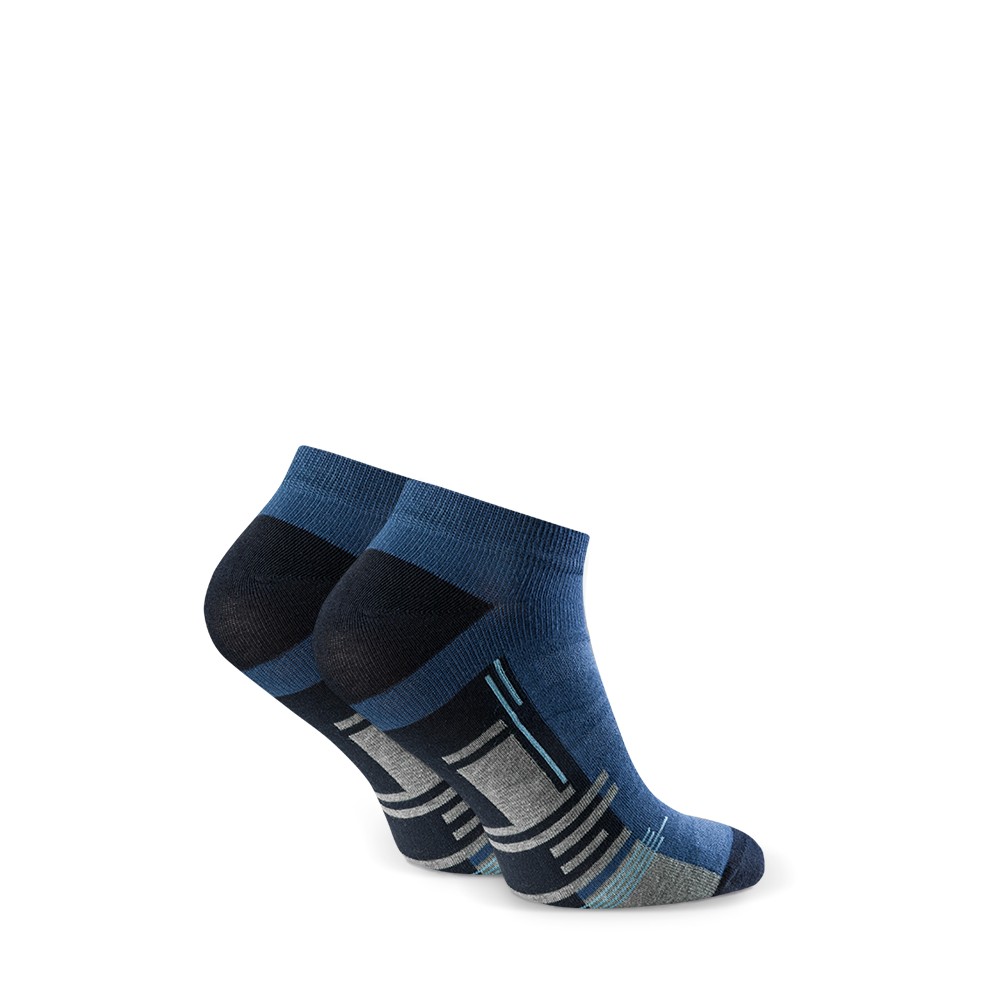 Lekkie bawełniane męskie stopki powstały z myślą o nadchodzących ciepłych miesiącach i perspektywa spędzania czasu w dużo bardziej aktywny sposób niż ma to miejsce zimą. Dynamiczny wzór dostępny w kilku wariantach kolorystycznych sprawdzi się w zarówno w sportowych, jak i codziennych stylizacjach. Model dostępny jest w rozmiarach młodzieżowych i męskich od 35-37 do 44-46. Można pomyśleć, że taki deseń na stopach dojrzałego pana to odważna decyzja, ale przecież to do odważnych świat należy.