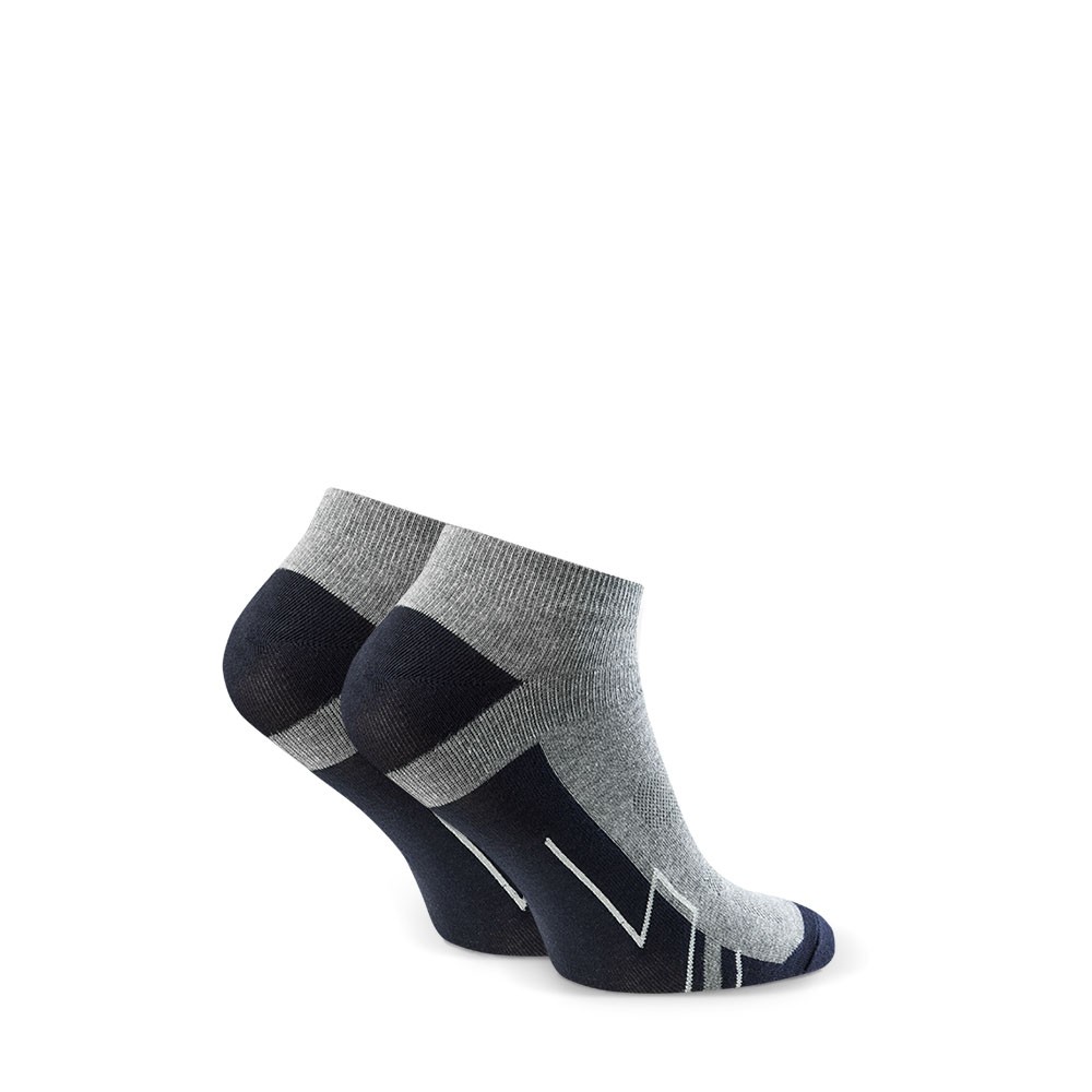 Lekkie bawełniane męskie stopki powstały z myślą o aktywnym sposobie spędzania czasu. Dynamiczny wzór dostępny w kilku wariantach kolorystycznych sprawdzi się w zarówno w sportowych, jak i codziennych stylizacjach. Model dostępny jest w rozmiarach młodzieżowych i męskich od 35 do 46. Można pomyśleć, że taki design na stopach dojrzałego pana to odważna decyzja, ale przecież to do odważnych świat należy.