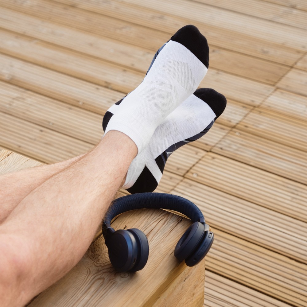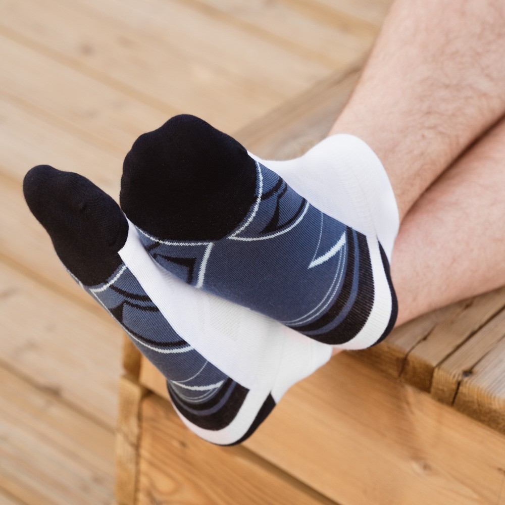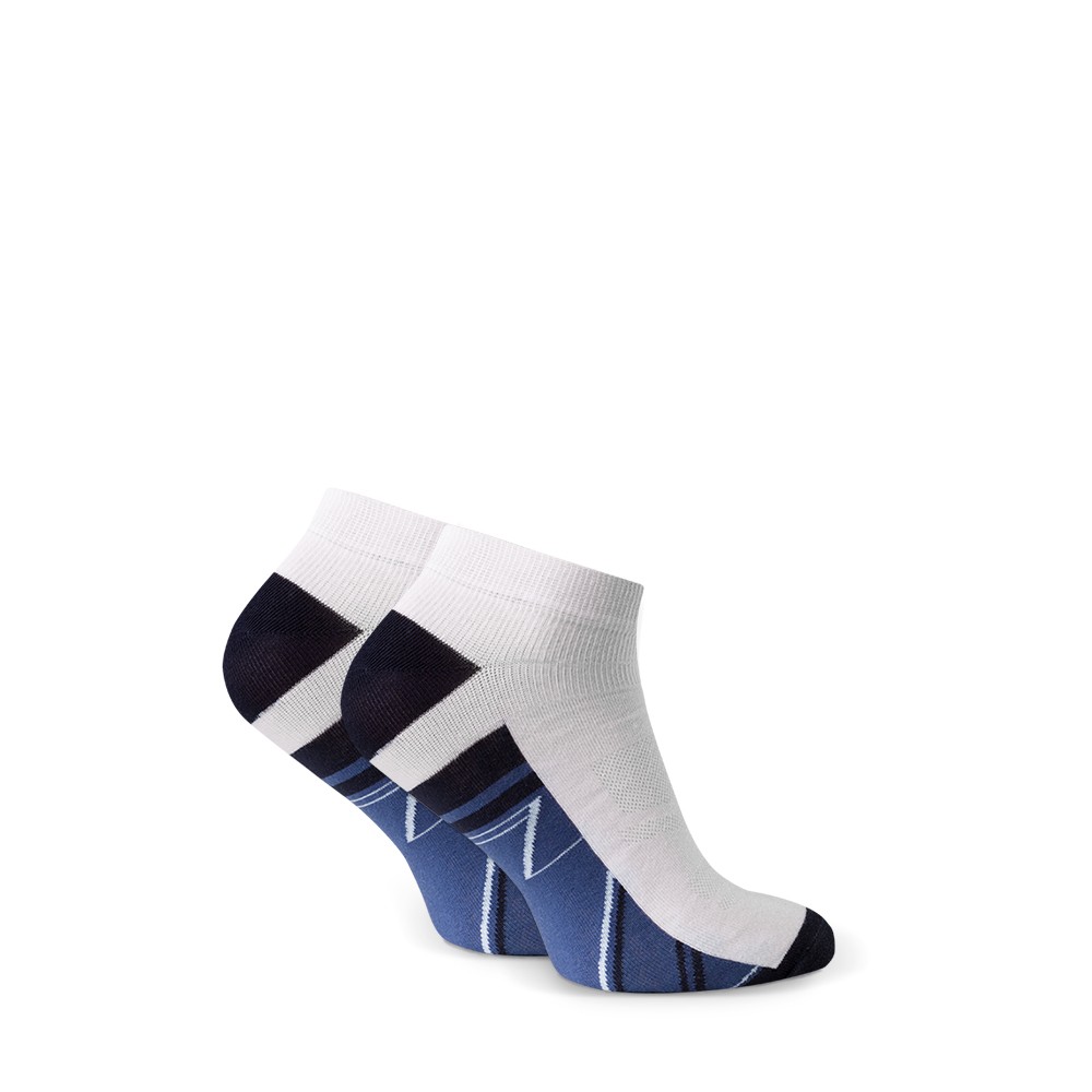 Lekkie bawełniane męskie stopki powstały z myślą o aktywnym sposobie spędzania czasu. Dynamiczny wzór dostępny w kilku wariantach kolorystycznych sprawdzi się w zarówno w sportowych, jak i codziennych stylizacjach. Model dostępny jest w rozmiarach młodzieżowych i męskich od 35 do 46.