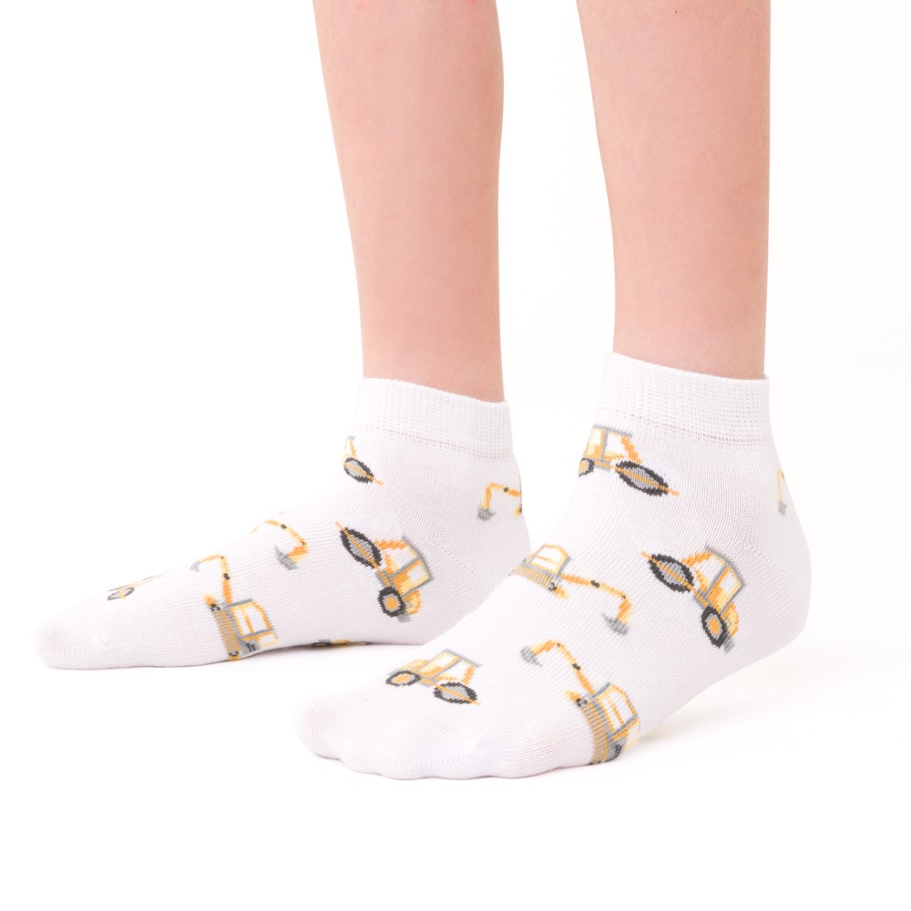 Koparki lubi chyba każdy chłopiec, musiały się więc znaleźć również na naszych stopkach. Delikatna bawełna, z której wykonane zostały skarpetki, zapewni odpowiednią wentylację, dzięki czemu stopy dziecka nie będą się pocić. Z pewnością nasze stopki spodobają się małym chłopcom i sprostają ich wymaganiom podczas codziennych aktywności.