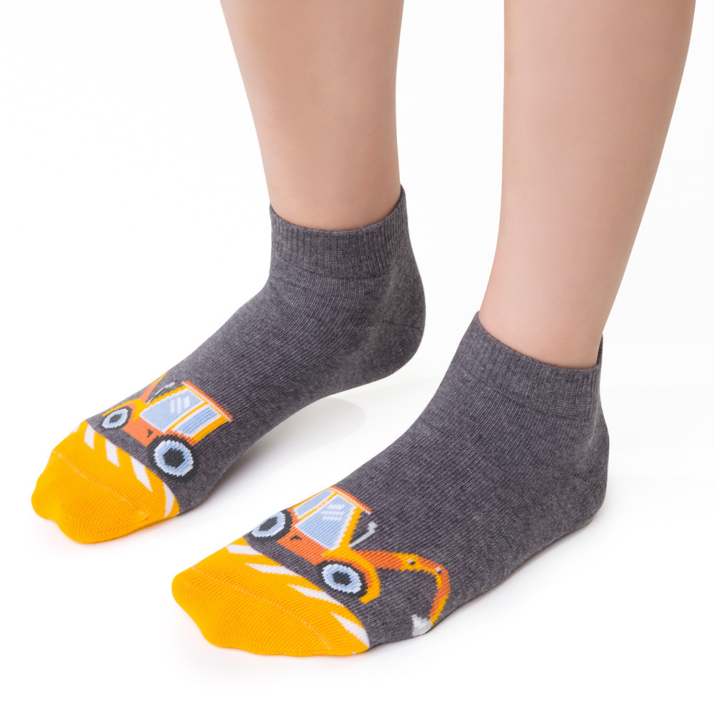 Stopki przed kostkę dla chłopców z wzorem w koparkę to doskonały wybór dla młodych miłośników motoryzacji i aktywnego stylu życia. Wykonane z wysokiej jakości materiałów, zapewniają komfort i trwałość. Dzięki przewadze bawełny (72%) skarpetki są miękkie, przewiewne i przyjemne w dotyku, a domieszka poliamidu, polipropylenu i elastanu gwarantuje elastyczność, idealne dopasowanie oraz odporność na przetarcia. Modny wzór sprawi, że będą świetnym dodatkiem do codziennych stylizacji.