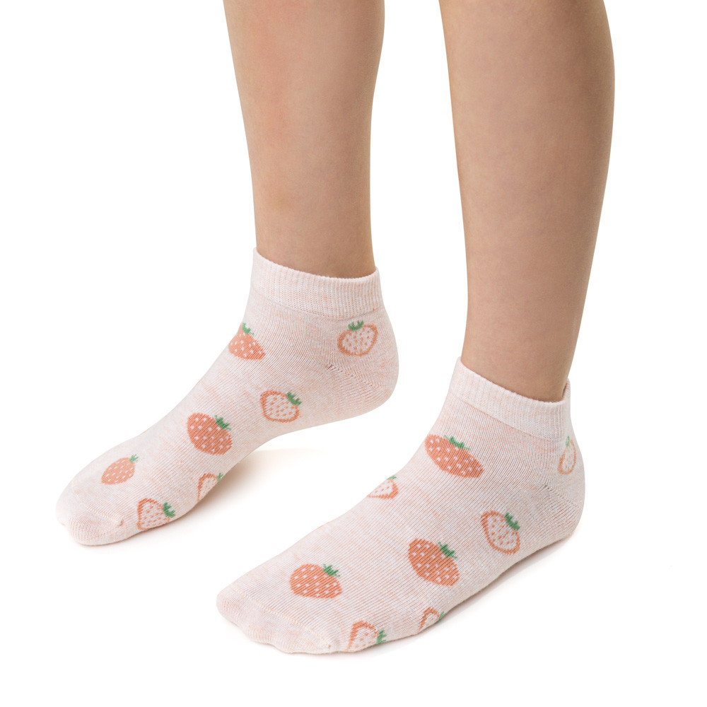 Nasze bawełniane skarpetki do kostki to idealny wybór dla małych miłośniczek wygody i kolorowych wzorów. Wykonane z miękkiej, oddychającej bawełny, zapewniają komfort noszenia przez cały dzień. Uroczy wzór w truskawki doda radości każdej stylizacji, a elastyczny ściągacz sprawi, że skarpetki pozostaną na swoim miejscu bez ucisku. Doskonałe do codziennych zabaw, przedszkola czy spacerów.