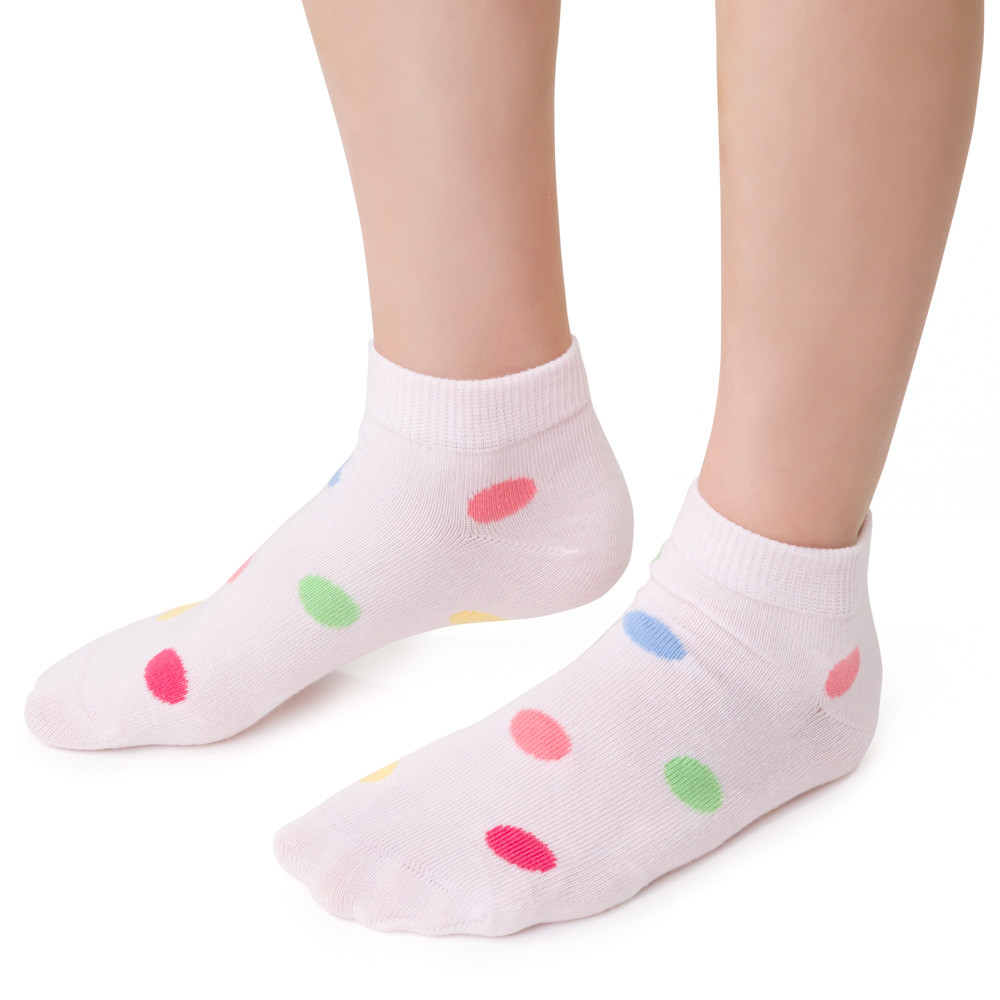 Nasze bawełniane skarpetki do kostki to idealny wybór dla małych miłośniczek wygody i kolorowych wzorów. Wykonane z miękkiej, oddychającej bawełny, zapewniają komfort noszenia przez cały dzień. Uroczy wzór w kolorowe kropki doda radości każdej stylizacji, a elastyczny ściągacz sprawi, że skarpetki pozostaną na swoim miejscu bez ucisku. Doskonałe do codziennych zabaw, przedszkola czy spacerów.