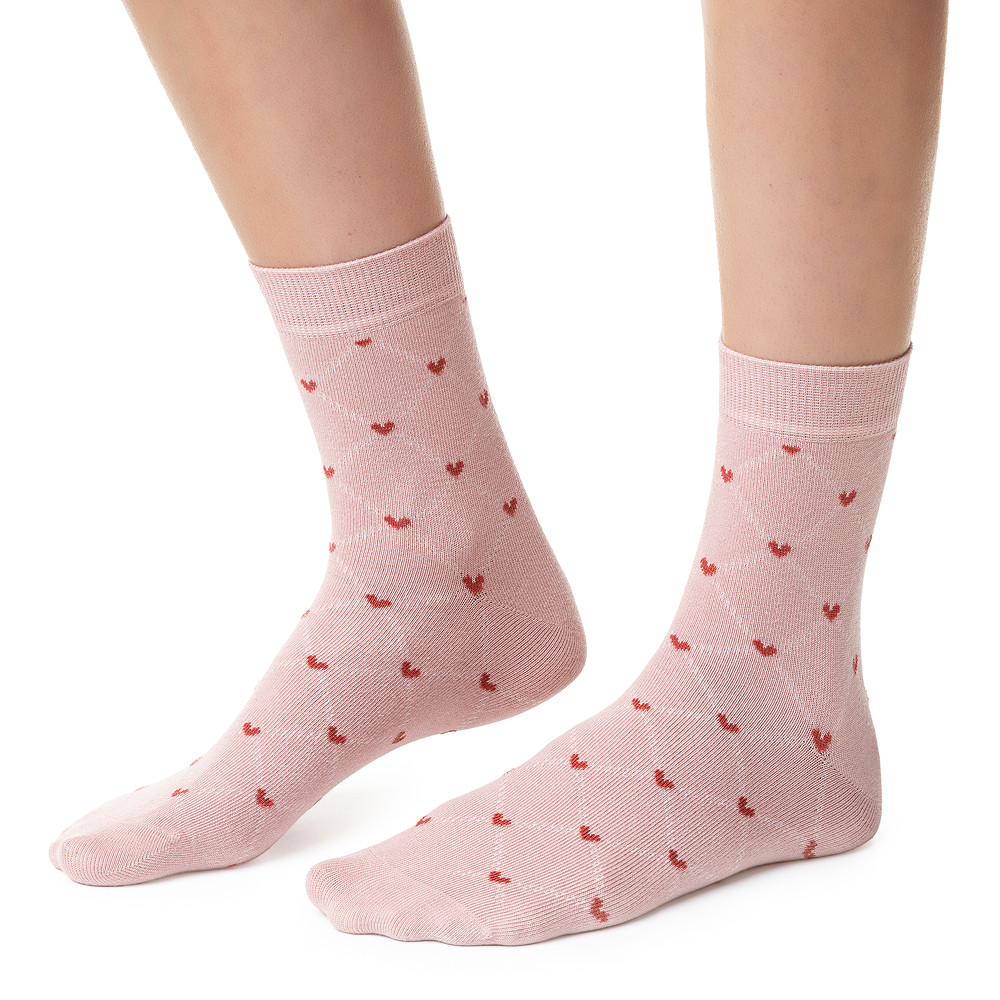 Różowe skarpetki damskie w czerwone serduszka to uroczy dodatek, który doda charakteru każdej stylizacji. Wykonane z miękkiego, przyjemnego w dotyku materiału, zapewniają komfort noszenia przez cały dzień. Delikatne ażurowe zdobienie nadaje im lekkości i subtelnej elegancji, dzięki czemu świetnie sprawdzą się zarówno na co dzień, jak i jako stylowy akcent do bardziej kobiecych zestawów. Elastyczny ściągacz dobrze dopasowuje się do stopy, nie uciskając jej, a staranne wykończenie gwarantuje trwałość i estetyczny wygląd nawet po wielu praniach. Idealne dla miłośniczek romantycznych detali i wyjątkowych dodatków.