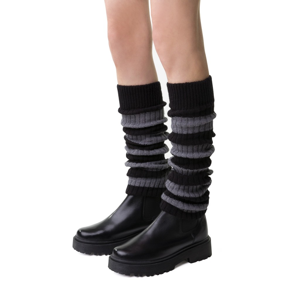 Getry wełniane w paski czarno-szare