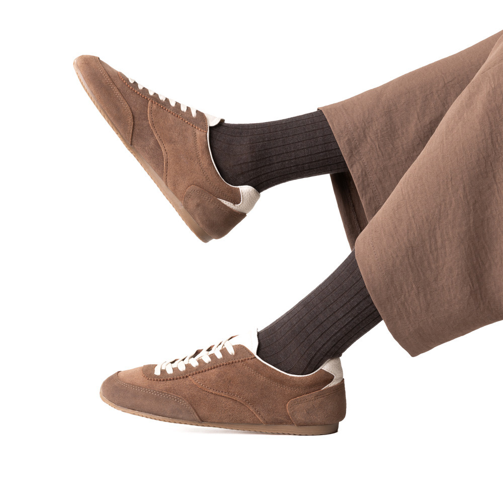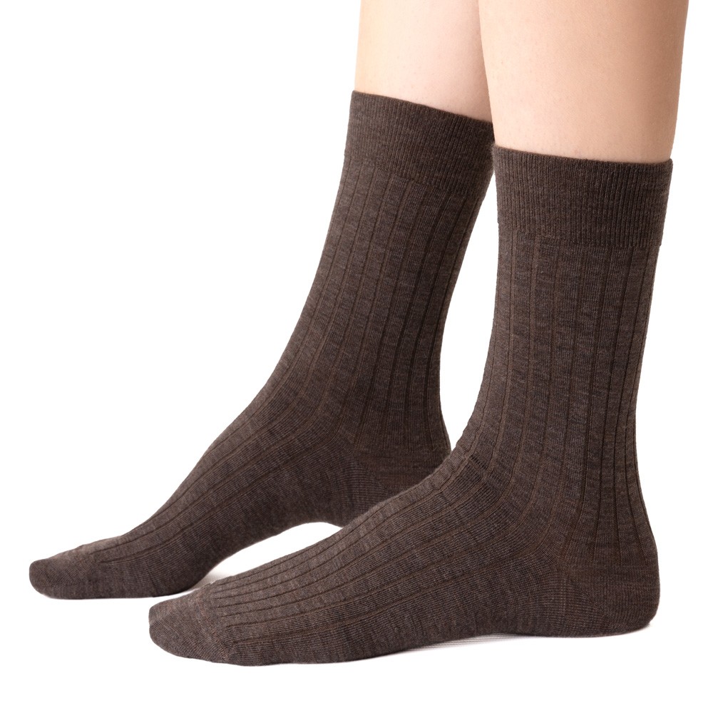Skarpetki bezuciskowe z wełny merynosów brązowe