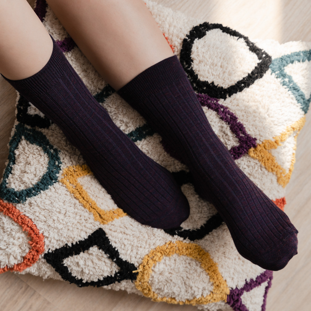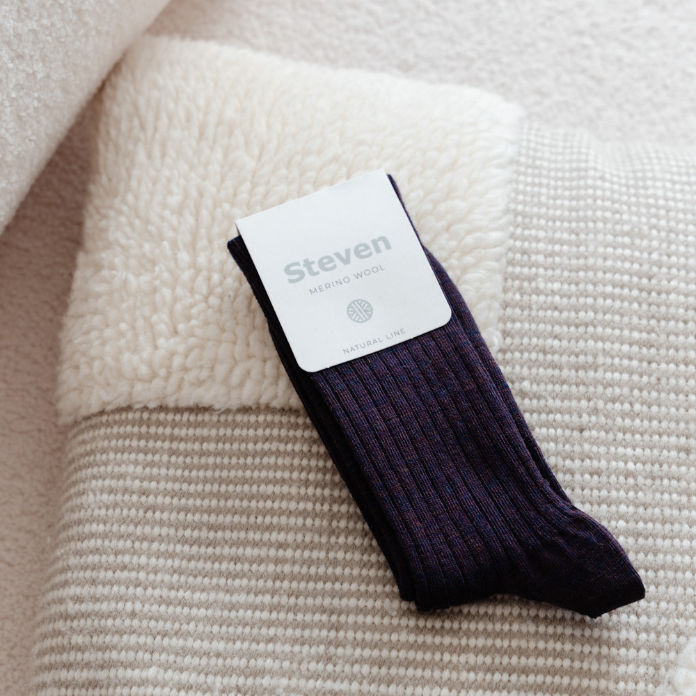 Skarpetki bezuciskowe z wełny merynosów fioletowe