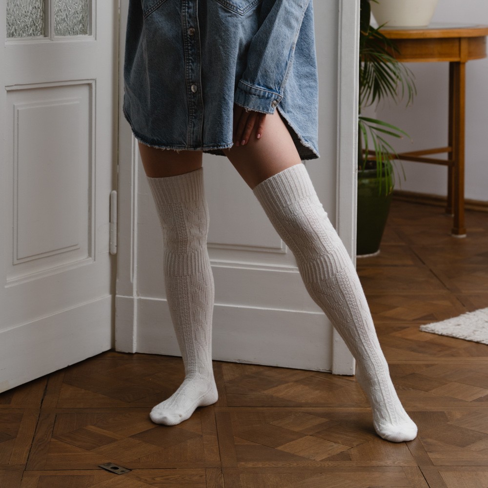 Zakolanówki wełniane ecru